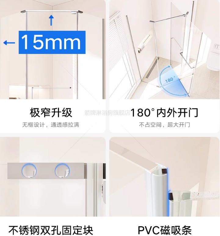 15mm極窄邊鑽石型180浴屏-雅黑
